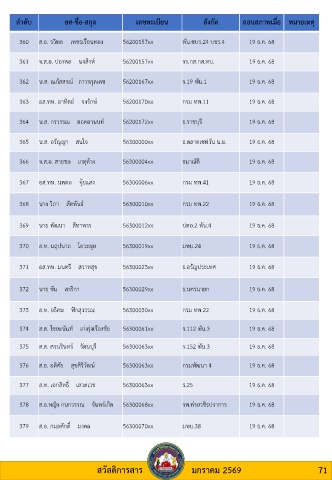 362 น.ส. ณภัสสรณ์ ถาวรกุลเดช 56200167xx ร.19 พัน.1 19 ธ.ค. 68