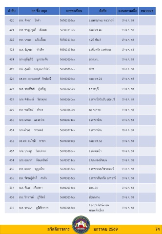 424 นาง สุชัญสินี มูลประดับ 56600002xx สลก.ทบ. 19 ธ.ค. 68