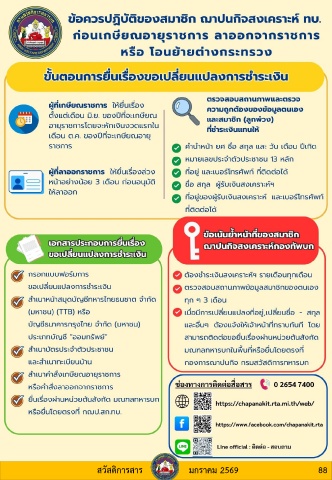 Page 88 - สวัสดีครับท่านผู้อ่านทุกท่าน ก่อนอื่นกระผมขอแนะนำตัวก่อนครับ กระผม พันเอก กัญจน์ณัฎฐ์ นิลนนท์ รับหน้าที่เป็นบรรณาธิการสวัสดิการสารแทน พันเอก สมเกียรติ ถนอมคุ้ม ผู้อำนวยการกองกิจการรร้านสวัสดิการกลาง กรมสวัสดิการทหารบก เนื่องจากท่านมีภารกิจที่มากขึ้น ผู้บังคับบัญชา จึงมอบหมายให้กระผมมารับหน้าที่ต่อจากท่าน แต่ไม่ต้องกังวลครับเพราะว่าหนังสือสวัสดิการสารของเรายังคงมีเนื้อหาสาระน่ารู้ต่าง ๆ ที่เป็นประโยชน์ต่อท่านสมาชิกเช่นเดิม และถ้าสมาชิกท่านใดอยากแนะนำติชม หรือต้องการให้นำเสนอเรื่องใด สามารถแนะนำมาได้ครับ สุดท้ายนี้กองบรรณาธิการสวัสดิการสารขอขอบคุณทุกหน่วยที่ให้การสนับสนุนข้อมูล และภาพถ่ายทำให้หนังสือสวัสดิการสารมีความสมบูรณ์ครบถ้วนทั้งเนื้อหาสาระ และหวังเป็นอย่างยิ่งว่าท่านผู้อ่านจะได้รับความรู้ พร้อมทั้งความบันเทิงจากหนังสือสวัสดิการสารฉบับนี้ครับ