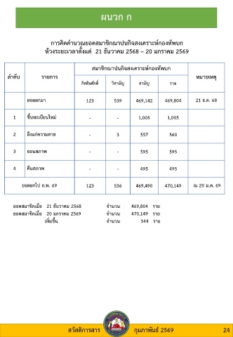 ยอดสมาชิกเมื่อ 20 มกราคม 2569 จ านวน 470,149 ราย