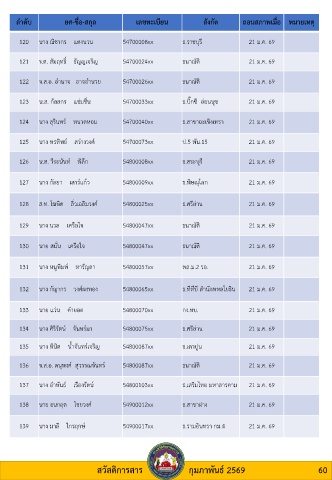 120 นาง ณิชากร แตงนวน 54700008xx ธ.ราชบุรี 21 ม.ค. 69