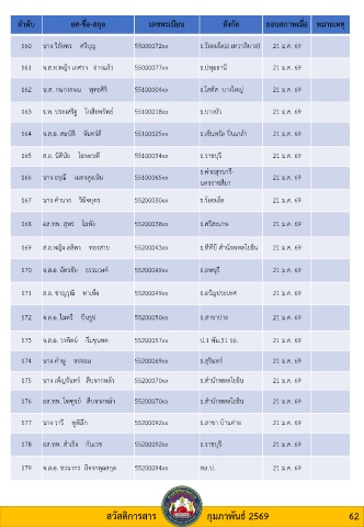 171 ส.อ. ชาญวุฒิ ทาเพ็ง 55200049xx ธ.อรัญประเทศ 21 ม.ค. 69