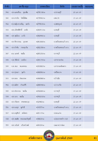 550 นาง รุ่งนภา กุแก้ว ต288385/xx ธ.ศรีสะเกษ 21 ม.ค. 69