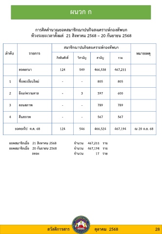 ยอดสมาชิกเมื่อ 21 สิงหาคม 2568 จ านวน 467,211 ราย