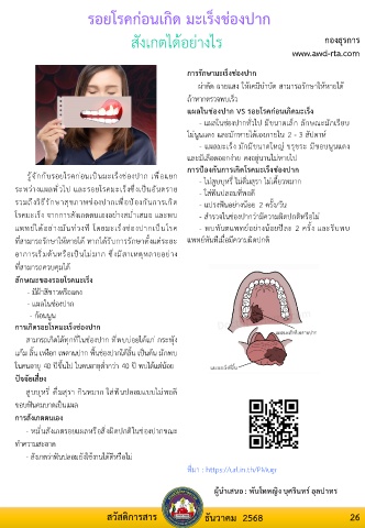 แพทยไดอยางมันทวงที โดยมะเร็งชองปากเปนโรค - พบทันตแพทยอยางนอยปละ 2 ครั้ง และรีบพบ