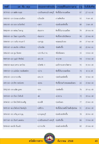 ศพที่ ยศ - ชื่อ - สกุล ประเภทการชําระเงิน สาเหตุที่ถึงแกความตาย อายุ วันที่เสียชีวิต