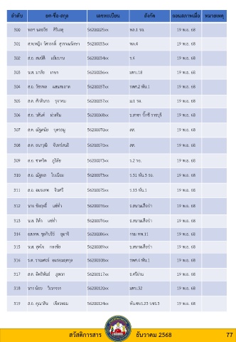 308 ส.ต. ธนาวุฒิ จันทรสนธ ิ 56200070xx สส. 19 พ.ย. 68