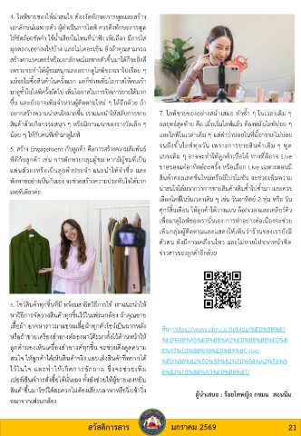 ที่ดีกับลูกค้า เช่น การทักทายกลุ่มผู้ชม หากมีผู้ชมที่เป็น แบบเดิม ๆ อาจจะท าให้ลูกค้าเบื่อได้ ทางที่ดีอาจ Live