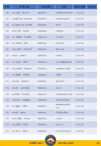 162 นาง เบญจมาภรณ์ ศุภวงศ์ชัย 55100066xx สพ.ทบ. 19 ธ.ค. 68