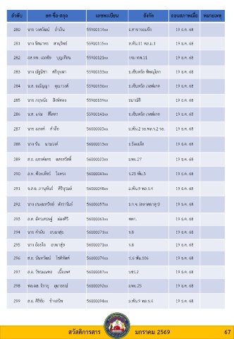 281 นาง รัตนาพร สานุวิทย์ 55900115xx ส.พัน.11 พล.ม.1 19 ธ.ค. 68