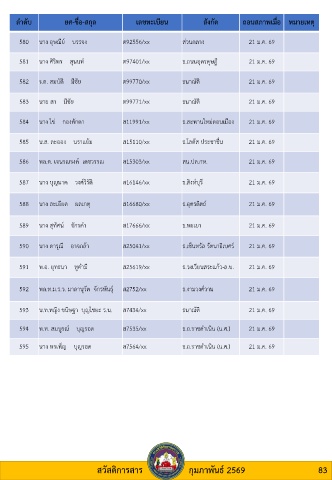 580 นาง อุษณีย์ บรรจง ต92556/xx ส่วนกลาง 21 ม.ค. 69