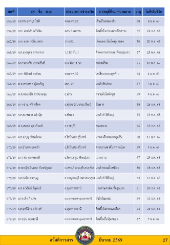 672/69 พ.ท.หญิง จินตนา จันทร์บูรณ์ ธ.เพชรบุรี (ถนนสุรินทรฦาชัย) มะเร็งต่อมน ้าเหลือง 80 18 ธ.ค. 68