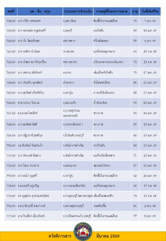 768/69 นาง สมจิตต์ มิสดี ธ.ประชานิเวศน์ 1 ชราภาพ 85 19 ม.ค. 69