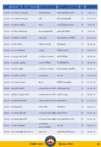 922/69 ร.ต.เตมีย์ฌาน คมค าภีร์ ธ.สนามเป้า ไม่ทราบสาเหตุการเสียชีวิต 62 20 เม.ย. 68