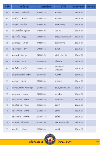 78 น.ส. พรศรี เล็กเจริญศรี 54500119xx ธ.รพ.พระมงกุฎเกล้า 18 ก.พ. 69
