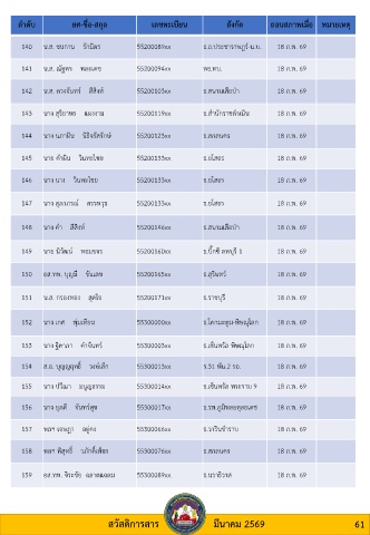 141 น.ส. ณัฐพร พละเดช 55200094xx พธ.ทบ. 18 ก.พ. 69