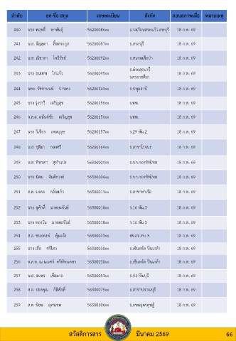 241 น.ส. ธัญสุดา ลิ้มตระกูล 56200087xx ธ.สระบุรี 18 ก.พ. 69