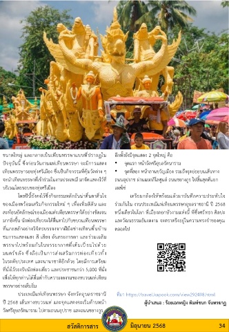 มากยิ่งขึ้น นักท่องเที่ยวจะได้ตื่นตาไปกับขบวนเทียนพรรษา      และวัฒนธรรมอันงดงาม จะตราตรึงอยู่ในความทรงจ าของคุณ