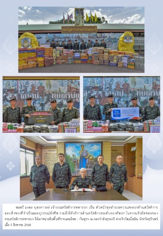 มอบสิ่งของที่จ าเป็นและอุปกรณ์ยังชีพ รวมถึงให้บริการด้านสวัสดิการระดับกองทัพบก ในความรับผิดชอบของ