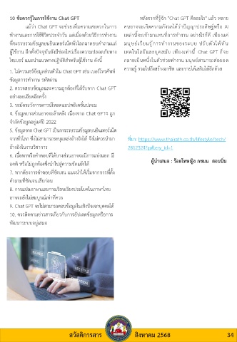 5. ข้อมูลจาก Chat GPT เป็นการรวบรวมข้อมูลบนอินเทอร์เน็ต