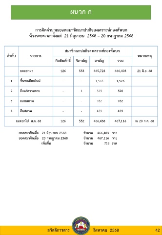 ยอดสมาชิกเมื่อ 20 กรกฎาคม 2568 จ านวน 467,116 ราย