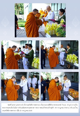 พลตรี มงคล บุตรดาวงษ์ เจ้ากรมสวัสดิการทหารบก เป็นประธานพิธีตักบาตรพระสงฆ์ จ านวน 10 รูป ถวายเป็น