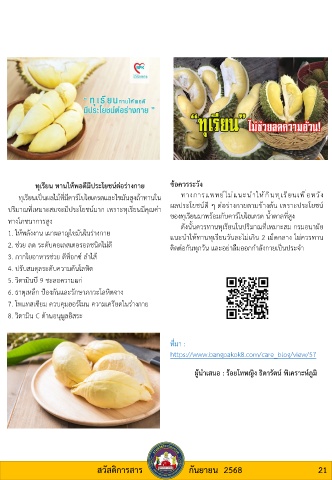 ทุเรียน ทานใหพอดีมีประโยชนตอรางกาย ขอควรระวง