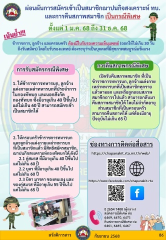 Page 86 - สวัสดีครับท่านผู้อ่านทุกท่าน ก่อนอื่นกระผมขอแนะนำตัวก่อนครับ กระผม พันเอก กัญจน์ณัฎฐ์ นิลนนท์ รับหน้าที่เป็นบรรณาธิการสวัสดิการสารแทน พันเอก สมเกียรติ ถนอมคุ้ม ผู้อำนวยการกองกิจการรร้านสวัสดิการกลาง กรมสวัสดิการทหารบก เนื่องจากท่านมีภารกิจที่มากขึ้น ผู้บังคับบัญชา จึงมอบหมายให้กระผมมารับหน้าที่ต่อจากท่าน แต่ไม่ต้องกังวลครับเพราะว่าหนังสือสวัสดิการสารของเรายังคงมีเนื้อหาสาระน่ารู้ต่าง ๆ ที่เป็นประโยชน์ต่อท่านสมาชิกเช่นเดิม และถ้าสมาชิกท่านใดอยากแนะนำติชม หรือต้องการให้นำเสนอเรื่องใด สามารถแนะนำมาได้ครับ สุดท้ายนี้กองบรรณาธิการสวัสดิการสารขอขอบคุณทุกหน่วยที่ให้การสนับสนุนข้อมูล และภาพถ่ายทำให้หนังสือสวัสดิการสารมีความสมบูรณ์ครบถ้วนทั้งเนื้อหาสาระ และหวังเป็นอย่างยิ่งว่าท่านผู้อ่านจะได้รับความรู้ พร้อมทั้งความบันเทิงจากหนังสือสวัสดิการสารฉบับนี้ครับ