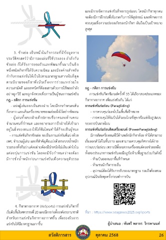 - แบ่งผู้เล่นออกเป็นสองฝ่าย โดยมีการก าหนดเส้น การแข่งขันร่มร่อน (Paragliding)