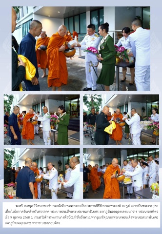 พลตรี สมสกุล วิจิตรภาพ เจ้ากรมสวัสดิการทหารบก เป็นประธานพิธีตักบาตรพระสงฆ์ 10 รูป ถวายเป็นพระราชกุศล