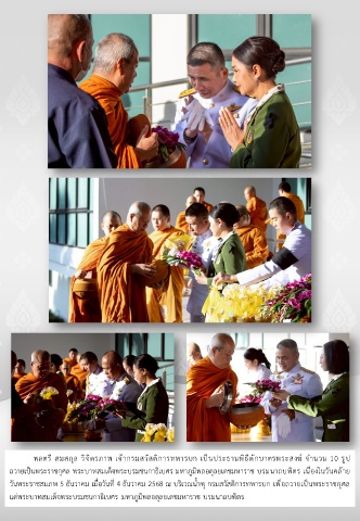 พลตรี สมสกุล วิจิตรภาพ เจากรมสวัสดิการทหารบก เปนประธานพิธีตักบาตรพระสงฆ จํานวน 10 รูป