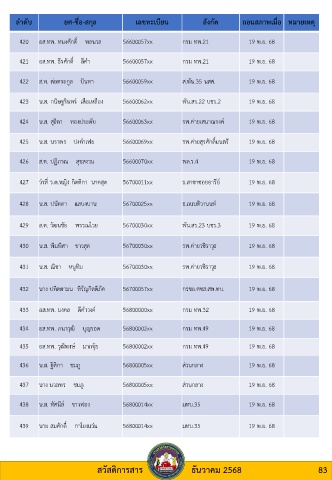432 นาง ปทิตตามน หิรัญกิตติภัค 56700057xx กรซย.ศซส.สพ.ทบ. 19 พ.ย. 68